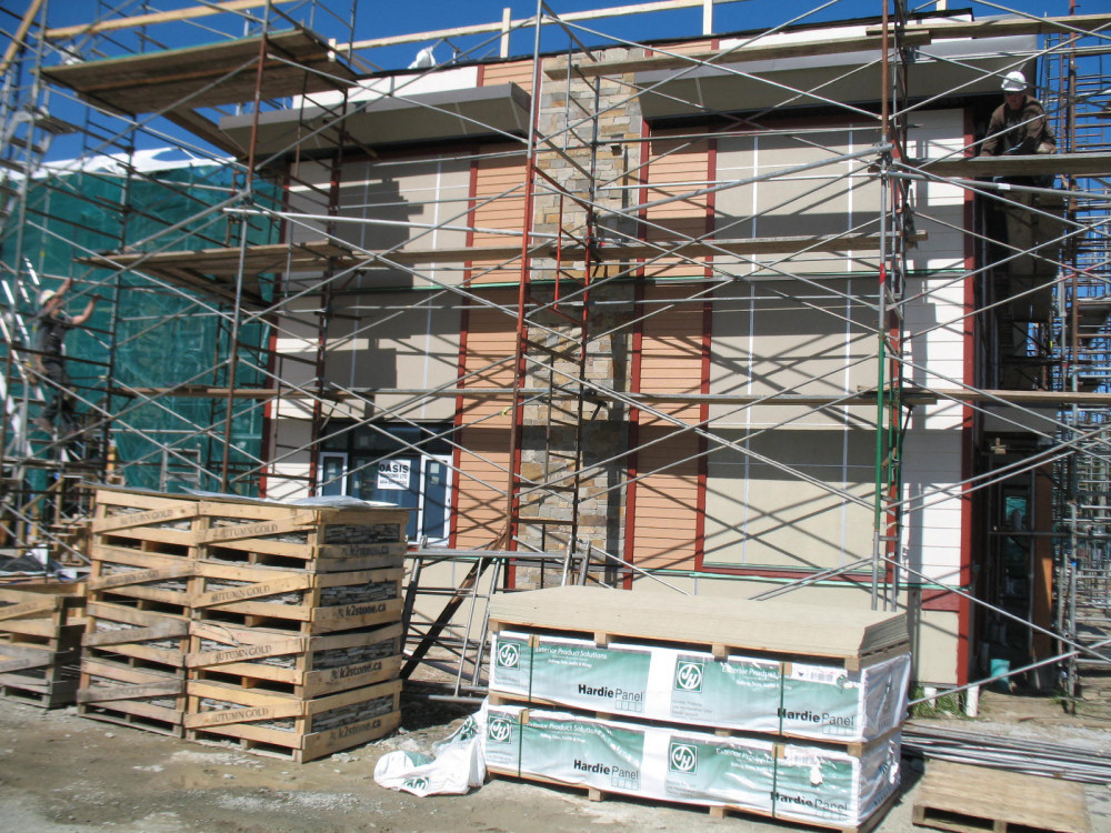 und Mehrfamilienhäuser ausgeführt werden. Das Projekt wurde in Holzständerbauweise verwirklicht. Es beinhaltet insgesamt 13 Gebäude